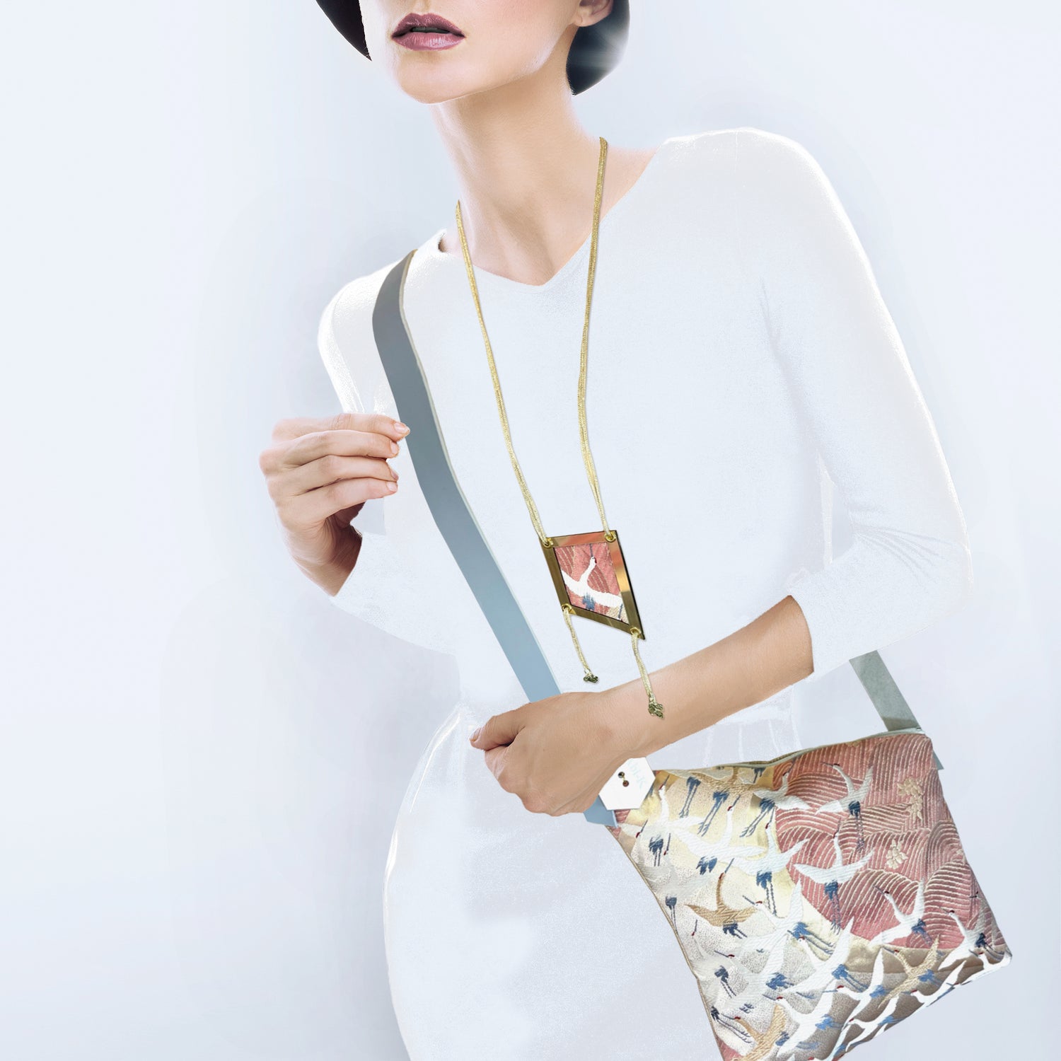British designer label Abi-K transforms vintage Japanese fukuro obi silks, once worn by geisha, into capsule collections of unique bags, jewellery, accessories and interior soft furnishings.