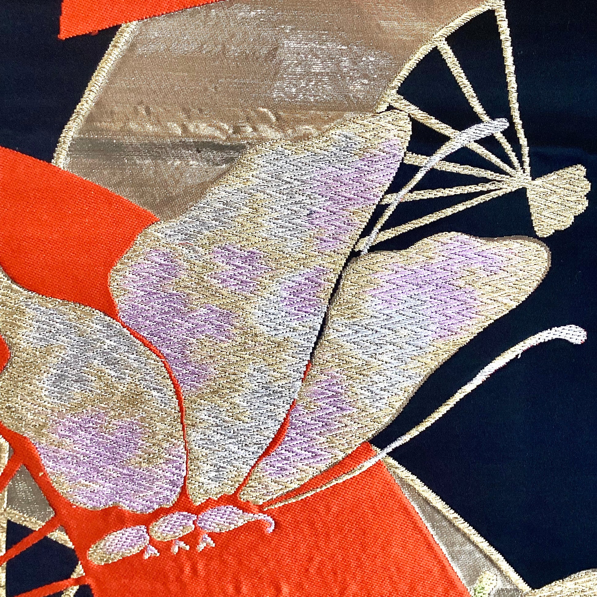 I amunique: Abi-K products are individually hand crafted from vintage Japanese kimono obi silks. The obi is the formal sash worn around the waste of a kimono and were once worn in formal Japanese ceremonies.Hexagonal shapes means 'kikko' (tortoise shell). In Japanese culture this represents 'happiness & longevity' often used in wedding ceremonial attire.