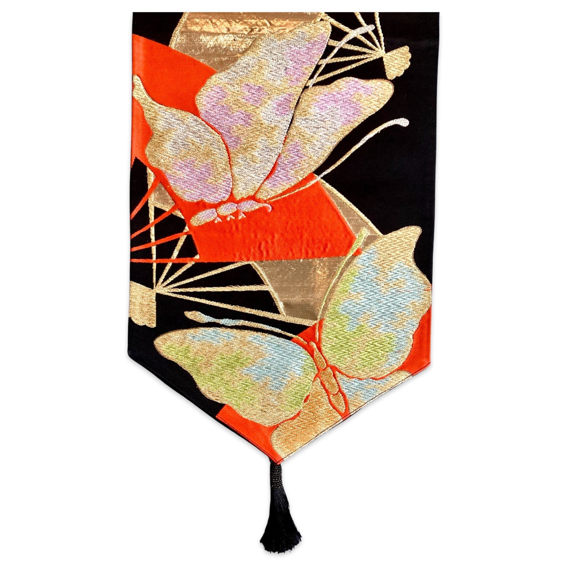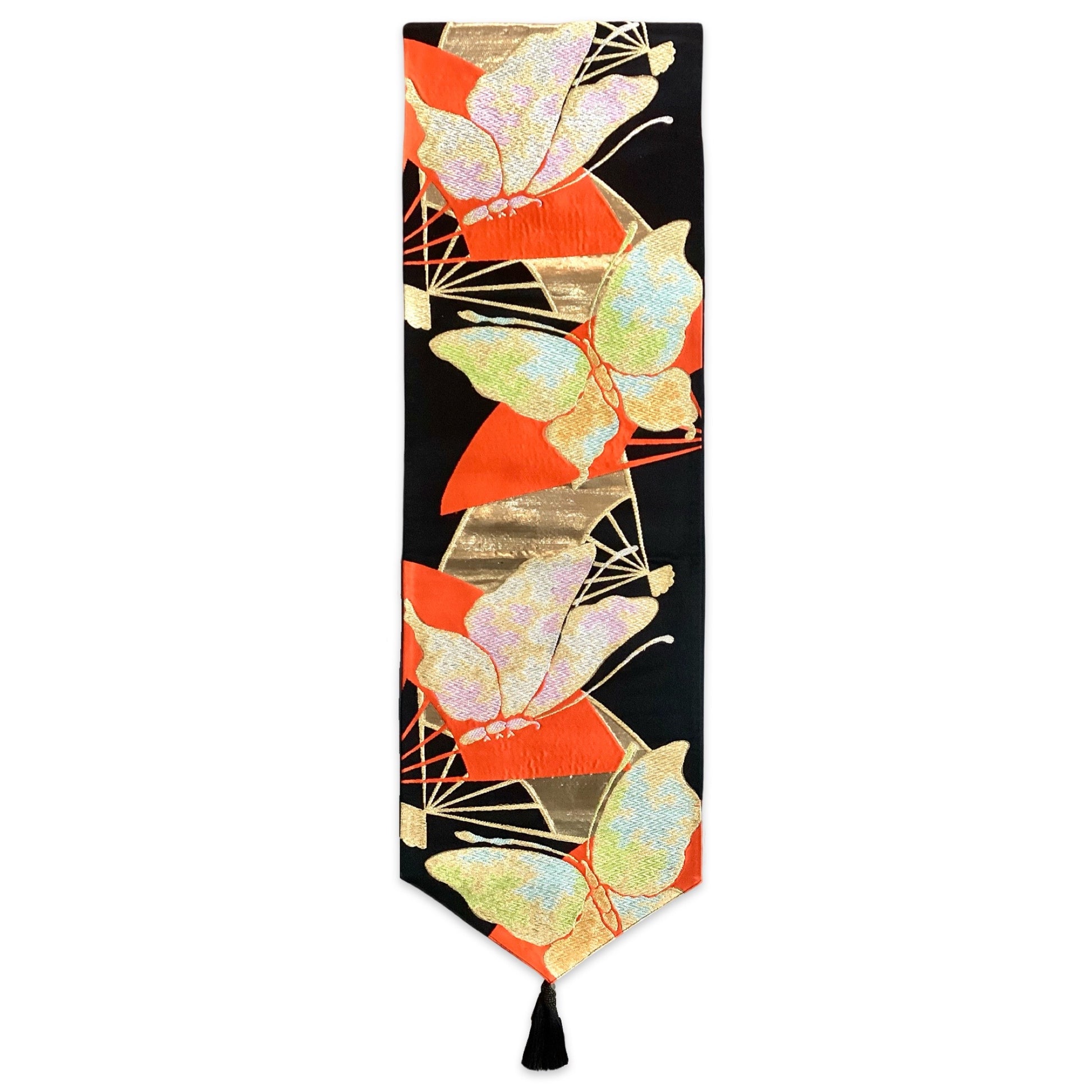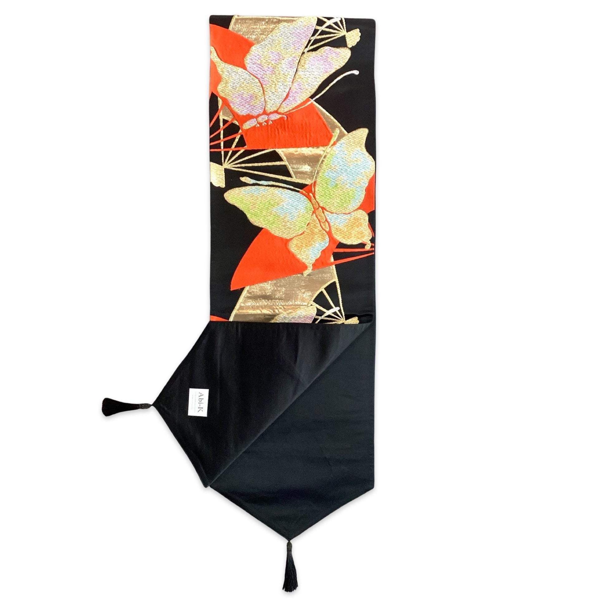 The Abi-K runner is a versatile gem of an accessory and instantly accessorises your interior with style and impact. Display along your dining table, across your furniture or even on your bed. Features a unique laser etched leather logo label and tassels. The reverse of the runner is made from the back of the original obi.