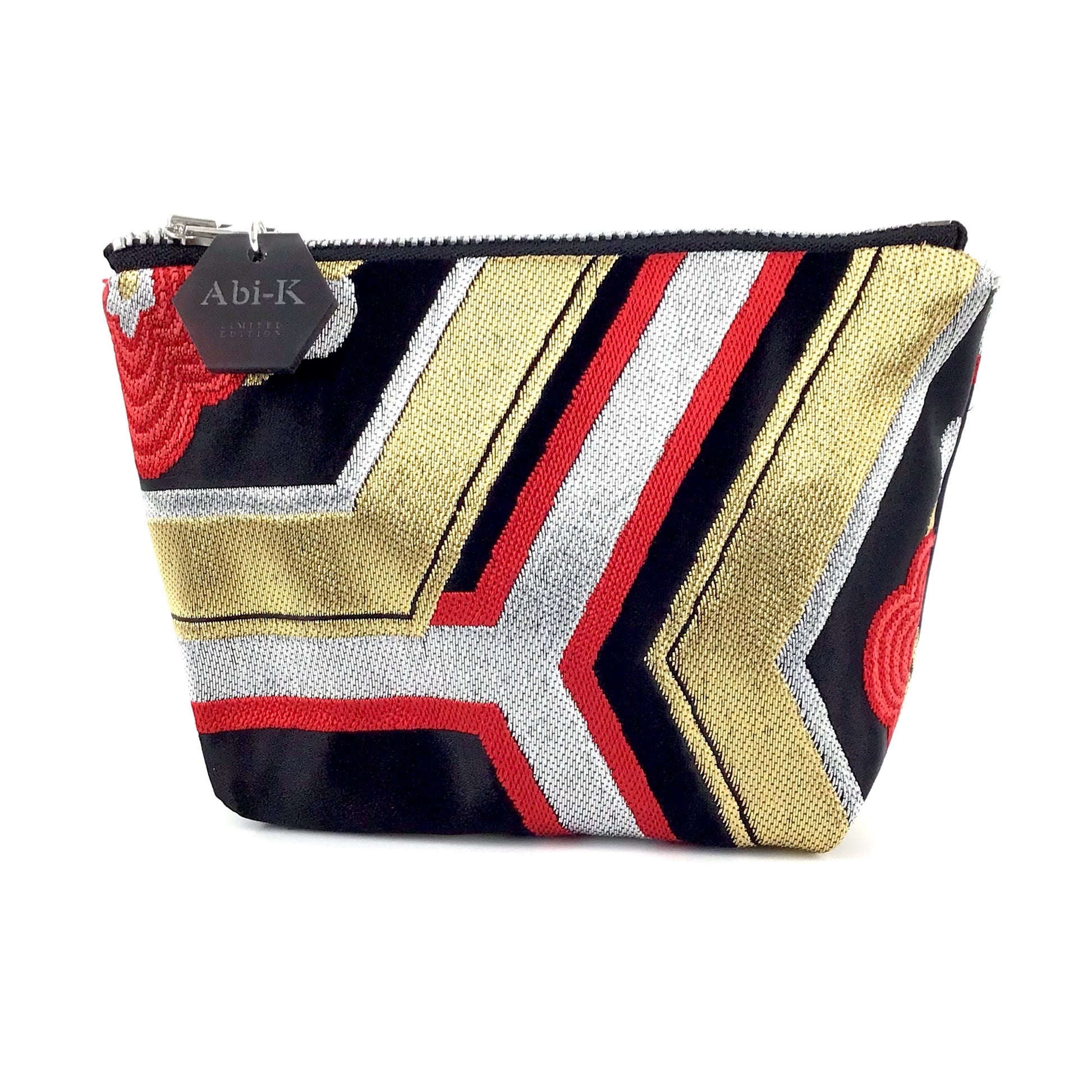 I amunique: Abi-K products are individually hand crafted from vintage Japanese kimono obi silks. The obi is the formal sash worn around the waste of a kimono and were once worn in formal Japanese ceremonies.Hexagonal shapes means 'kikko' (tortoise shell). In Japanese culture this represents 'happiness & longevity' often used in wedding ceremonial attire.