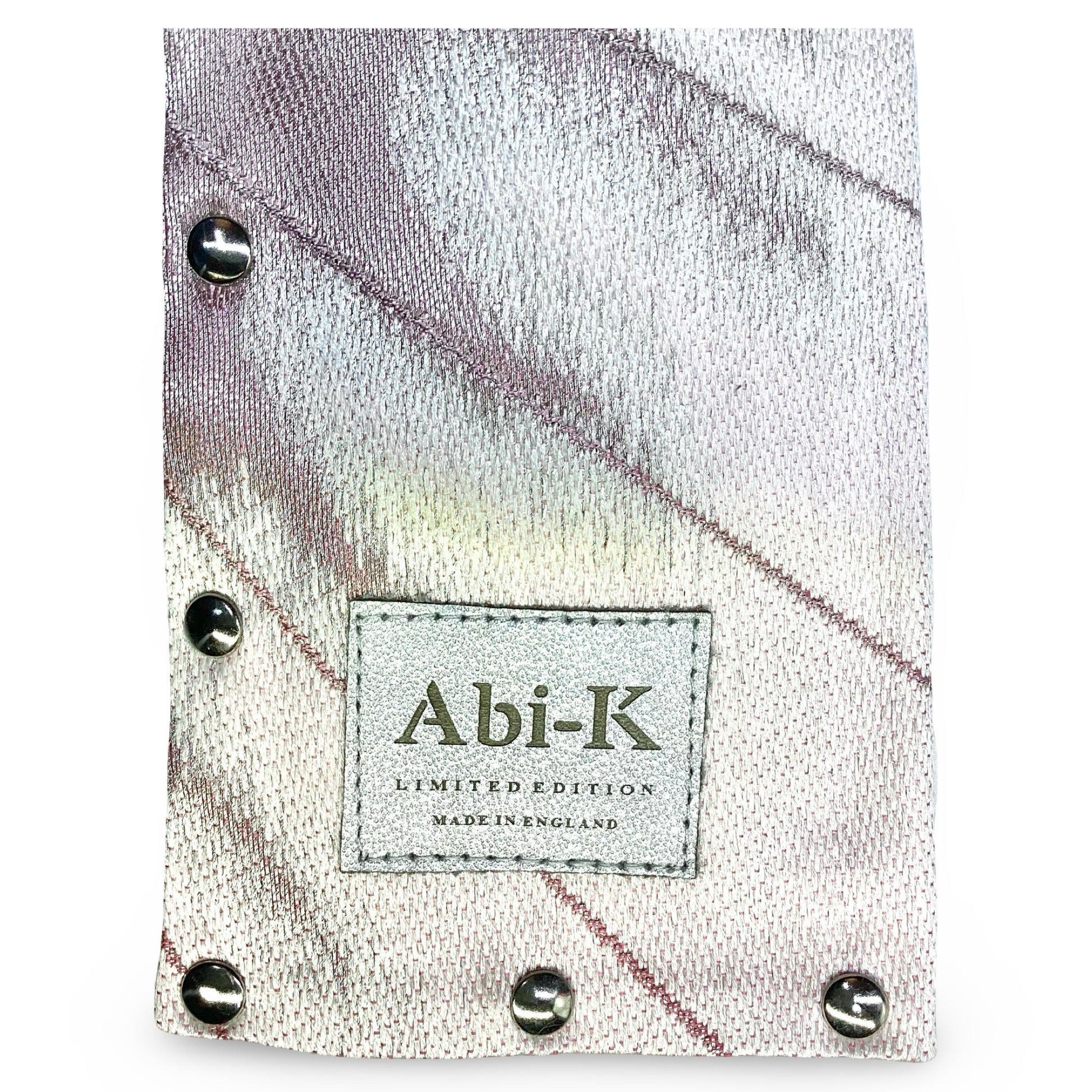 - Laser etched Abi-K metallic silver leather label